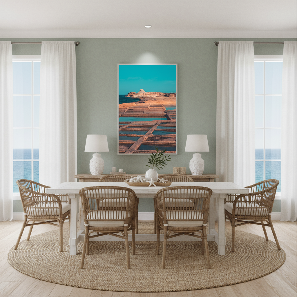 Elevate your decor with this exquisite portrayal of the Xwejni Salt Pans, a testament to both nature’s artistry and human endeavor. Whether you’re decorating a contemporary apartment, a traditional home, or a modern office, this piece will add a distinct character and a sophisticated focal point. It serves as a daily reminder of serene coastal beauty, encouraging moments of reflection and escape from the everyday.